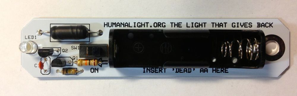In 2014, we decided to make a simple kit of the HumanaLight they we can sell on the market and use the proceeds to fuel our mission. We imagine school children, Makers, experimenters and hobbyists will all find this a fun kit to assemble and a useful light in times of emergencies.